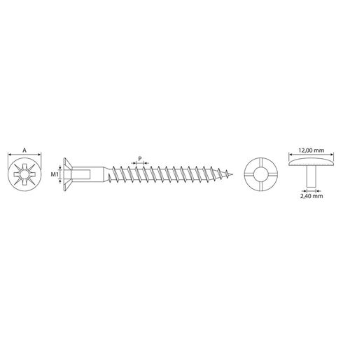 | Diametro nominale mm | Diametro testa mm | Diametro foro | Impronta croce PZ |