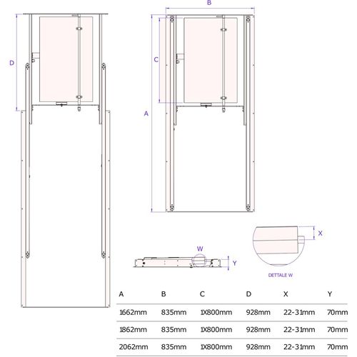 Spessore del piano utilizzabile da 19 a 31 mm (consigliato 22 mm)