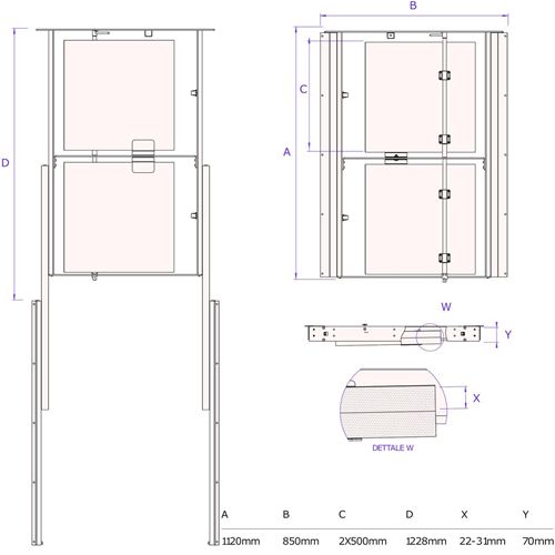 Spessore del piano utilizzabile da 19 a 31 mm (consigliato 22 mm)