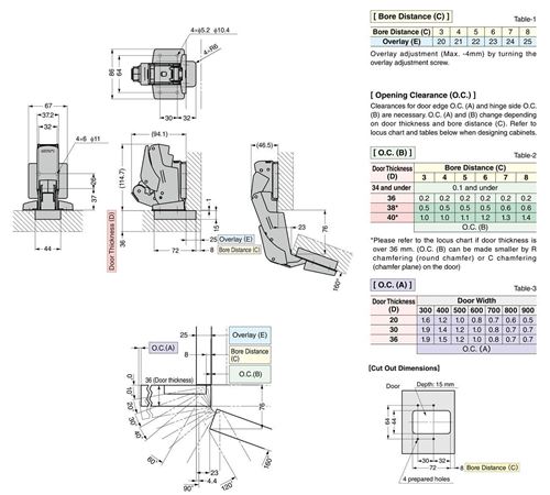 Cerniere ad alta portata con apertura 160° con basetta regolabile