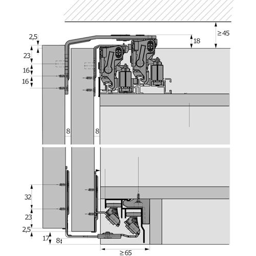 Kit per un sistema scorrevole TopLine XL a 3 ante con distanza dal