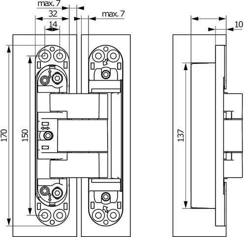 cerniere neo l7 3d cromo lucido mm 32 x 170/125