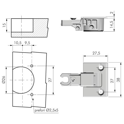 Scodellino con braccio lato anta per cerniere anta ribalta Kimana con doppio scodellino.Per anta spessore fino a 20 mmAngolo di apertura di 90°Scodellino lato base mobile e cover sono da ordinare a parte
