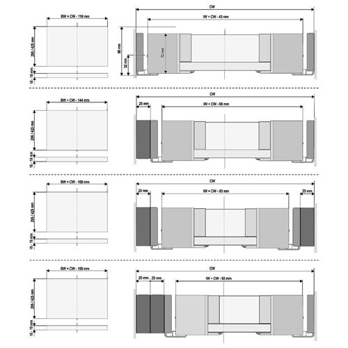 Set telaio per cassetto interno H 72composto da:1 set di telai sinistro + destro1 set di coperture per binari sinistro + destro1 set di supporti anteriori1 set di supporti posteriorimateriale di montaggioColore nero metal grey