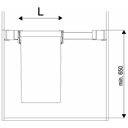 Sacco porta biancheria stretto per portapantaloni Conero.Larghezza mm 300Profondità mm 280Altezza mm 530Colore sacco grigio beigeColore staffe nero