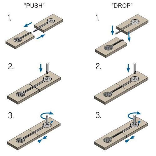Giunzione per assemblaggio con avvicinamento di piani con spessore a partire da 10 mm. (idonee per materiali sottili)