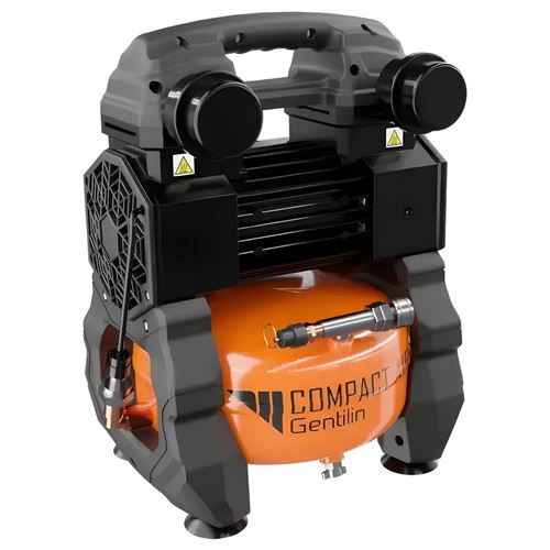 Compressore a pistoni a secco.Motore brushless 0.90 KW (1.21hp)Serbatoio in alluminio 5 lt2 cilindriAria aspirata 125 L/minAria resa @5 bar 115 L/minPressione massima 9 barSilenzioso 79 dB(A)L x W x H cm 32x24x38Peso Kg 9.5