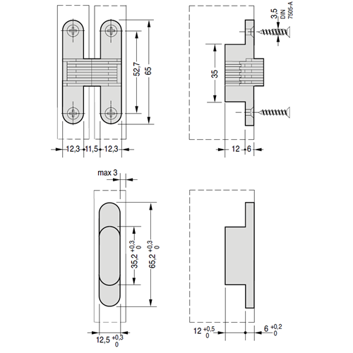 Cerniere invisibili con scodellini in nylon rivestiti con lamine metallica.