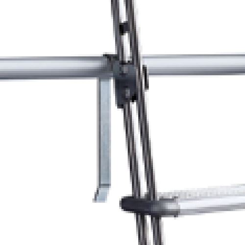 Scala con attacco a ramponi per l'aggancio a tubolare applicato alla scaffalatura.