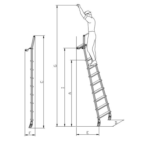 Il carrello permette di regolare l'inclinazione della scala secondo le necessità e lo spazio disponibile.