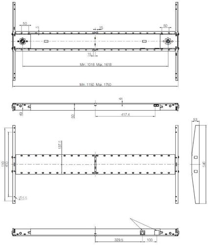 - Per scrivanie con dimensioni da 1180 mm a 1829 mm regolabile in passo di 50 mm