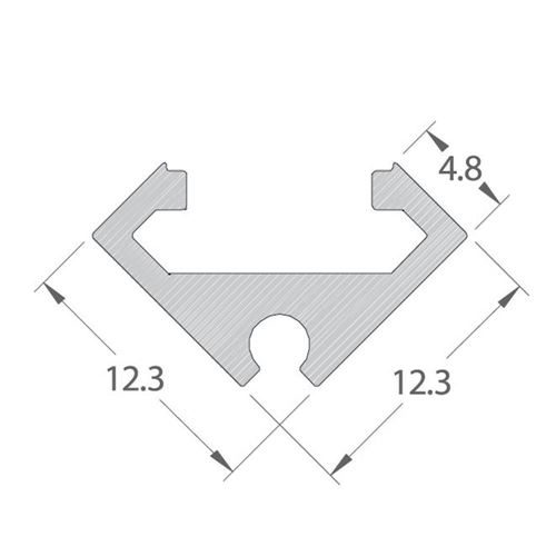 Profilo led led esterno inclinato a 45° in alluminio anodizzatoargentoLarghezza mm. 12,3Altezza mm. 12,3Utilizzabile con diffusore curvo (da ordinare a parte)Lunghezza cm. 200Finitura anodizzata argento