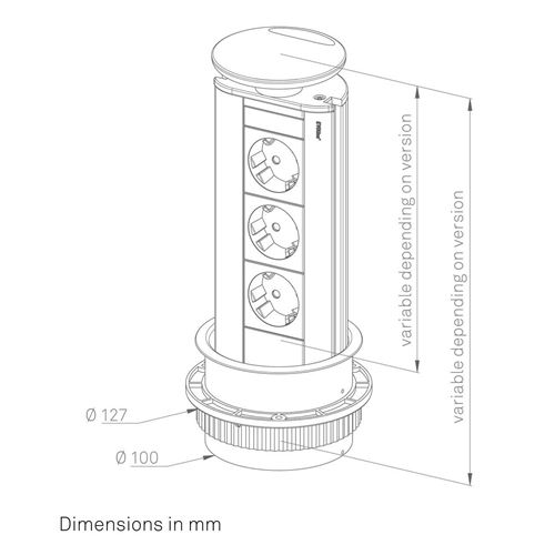 Coperchio basculante che permette la fuoriuscita dei cavi anche con torretta ritratta