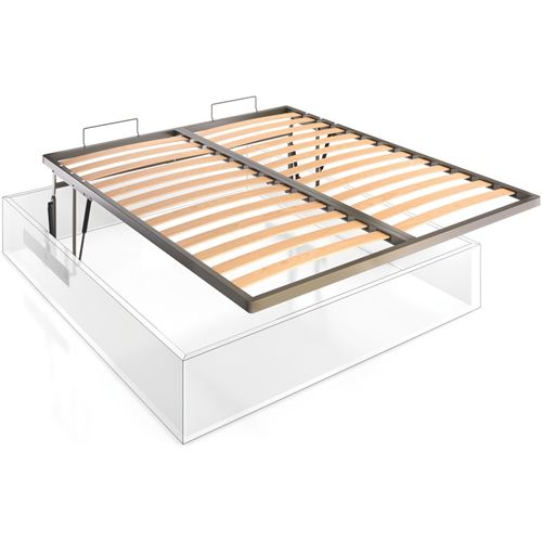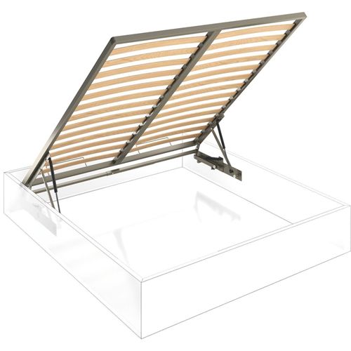 Sistema di sollevamento che consente il posizionamento del piano rete in due posizioni: a 45° per accedere con facilità al vano contenitore e orizzontale per un comodo rifacimento del letto.