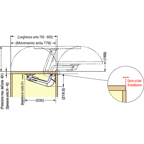 LIN-X800 è una cerniera laterale innovativa che permette l’apertura fluida dell’anta con un ingombro minimo.