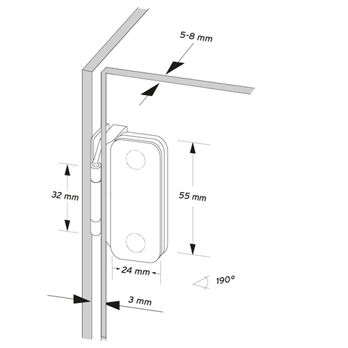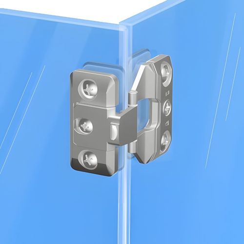 Cerniere per ante in cristallo applicabili su spalle in cristallo: ideali per mobili espositori.