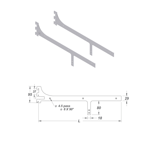 Coppia di reggimensole da fissare lateralmente al ripiano con connettori K-Plug per l'elettrificazione della mensola e attacco per profilo appenderia con illuminazione Tuboled.