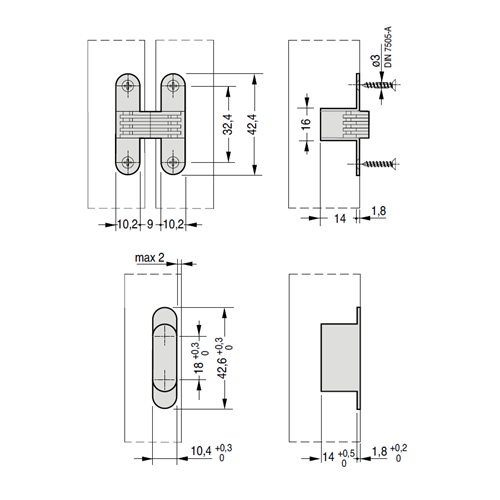 Cerniere invisibili realizzate in acciaio con snodi a lamelle.