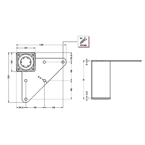 Piedini decorativi quadri sezione 50 x 50Realizzati in acciaio con regolabile nascostoPiastra da avvitare che permette il fissaggio a filo spigoloAltezza mm. 150Finitura cromo lucido