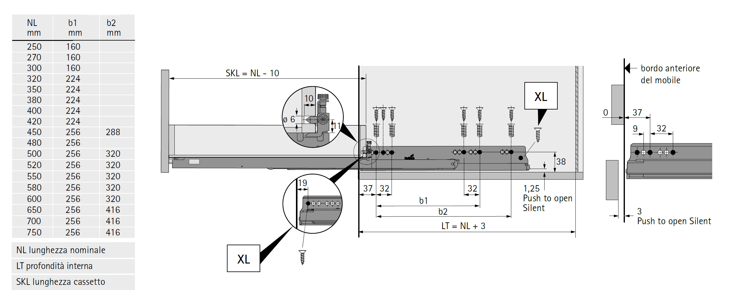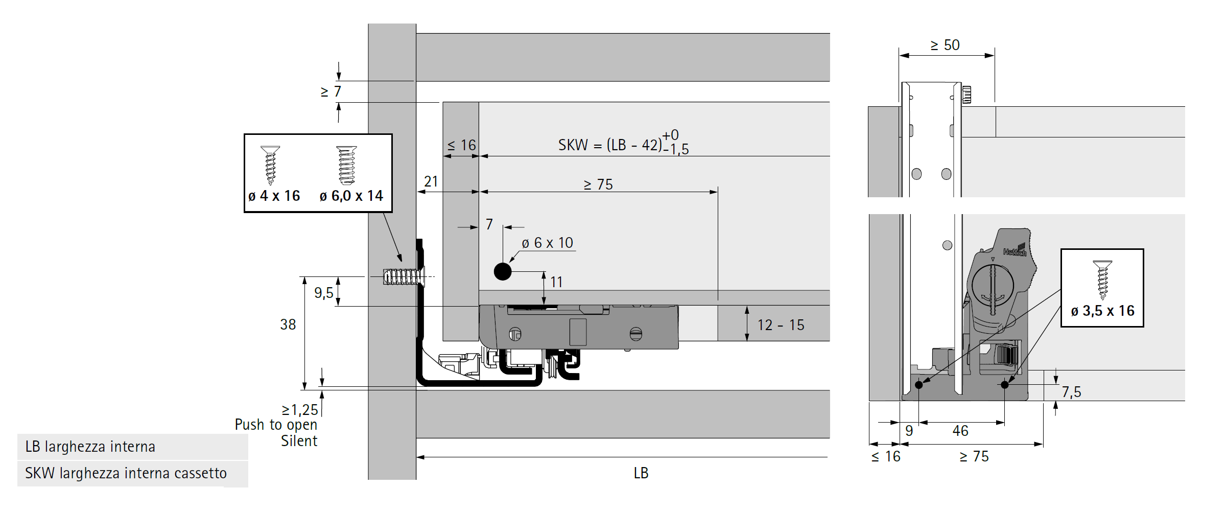 Adatto per cassetti con spessore spondina di max. 16 mm