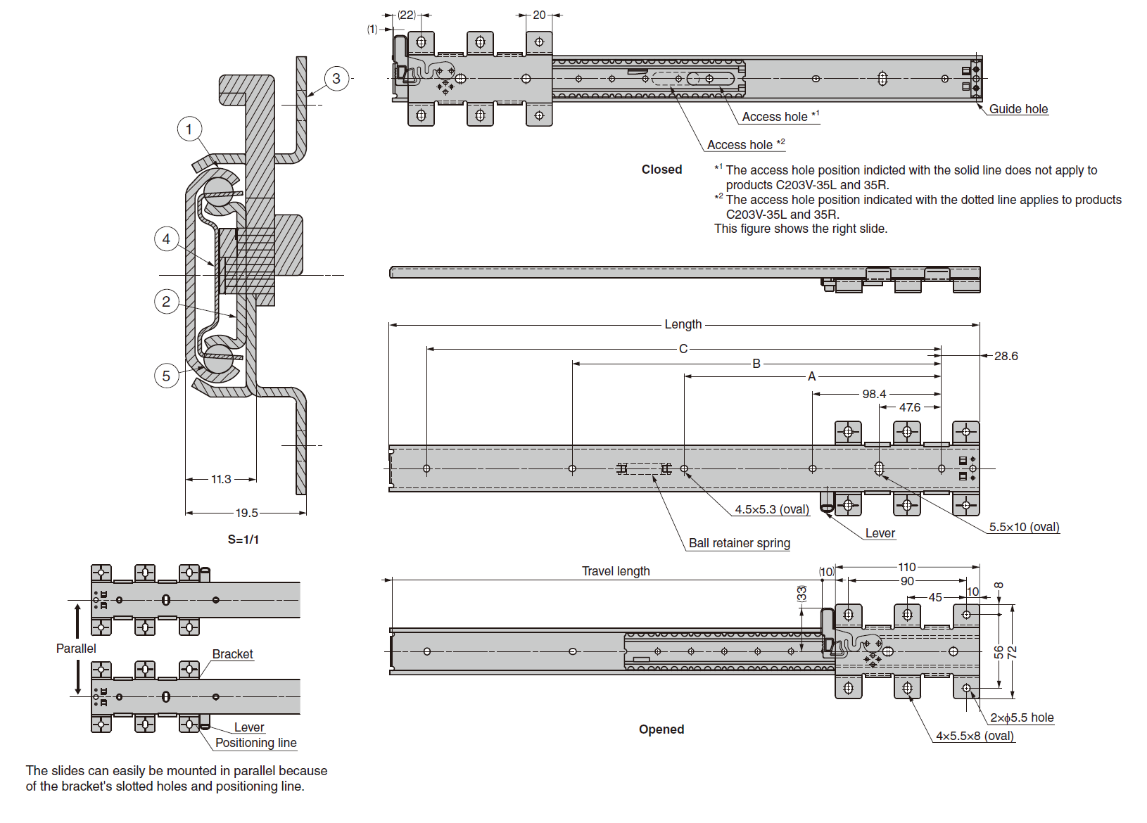 Guide C203V per piani estraibili