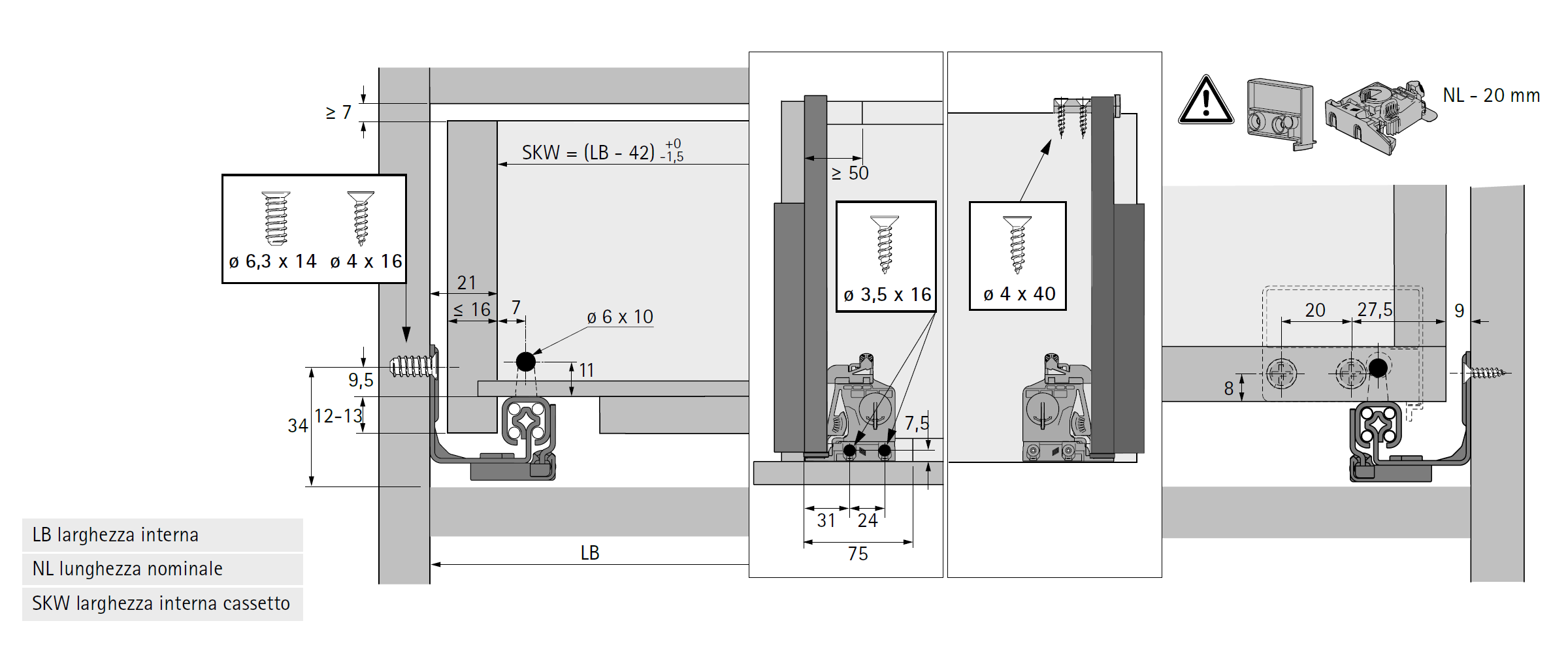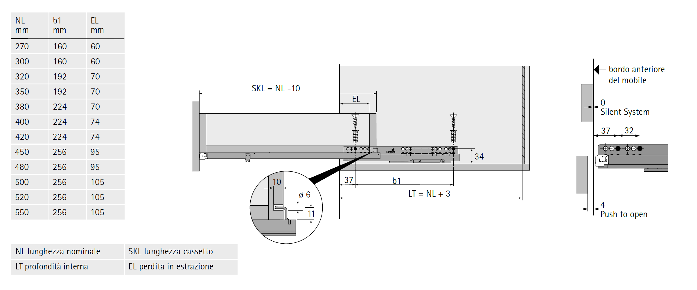 Adatto per cassetti con spessore spondina di max. 16 mm