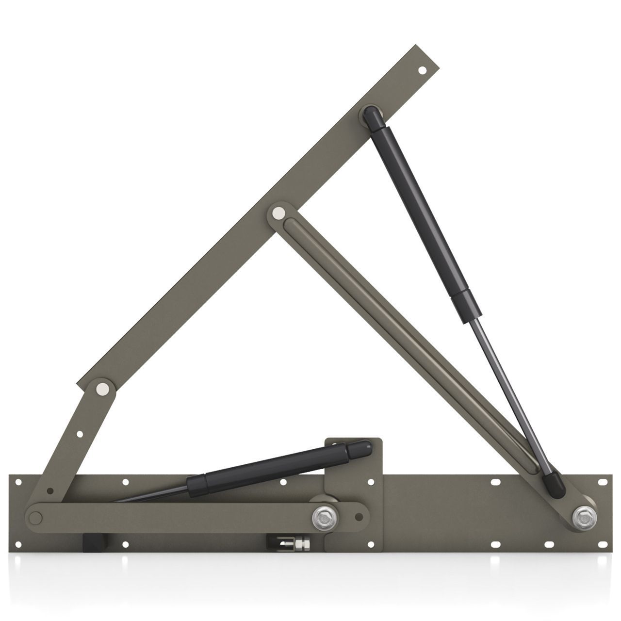 Sistema di sollevamento che consente il posizionamento del piano rete in due posizioni: a 45° per accedere con facilità al vano contenitore e orizzontale per un comodo rifacimento del letto.