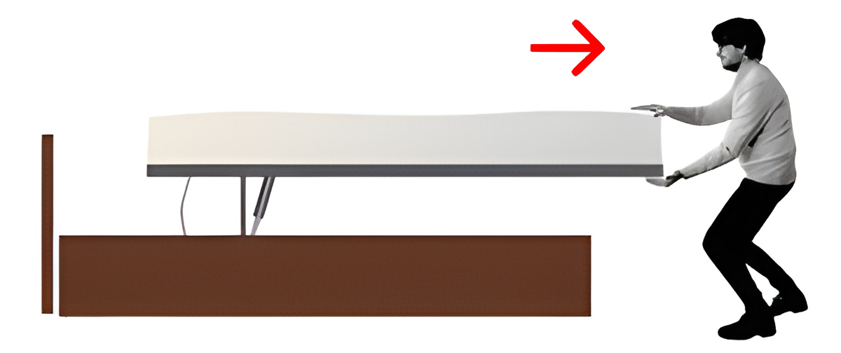 È dotato di molle a gas con sistema "Under control" che permettono il riposizionamento del letto da orizzontale aperto a 45° gradi in modo confortevole.