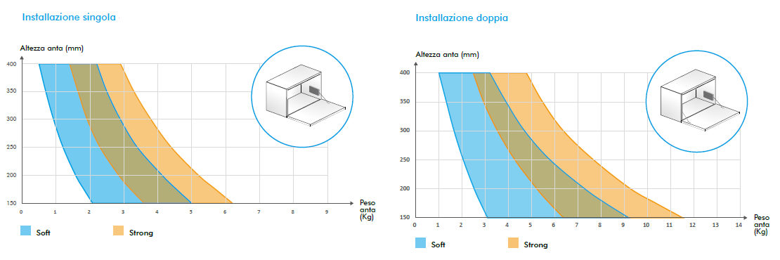 Ideale per ante di dimensioni e peso ridotto (altezza fino a a 400 mm con peso fino a 10 kg)