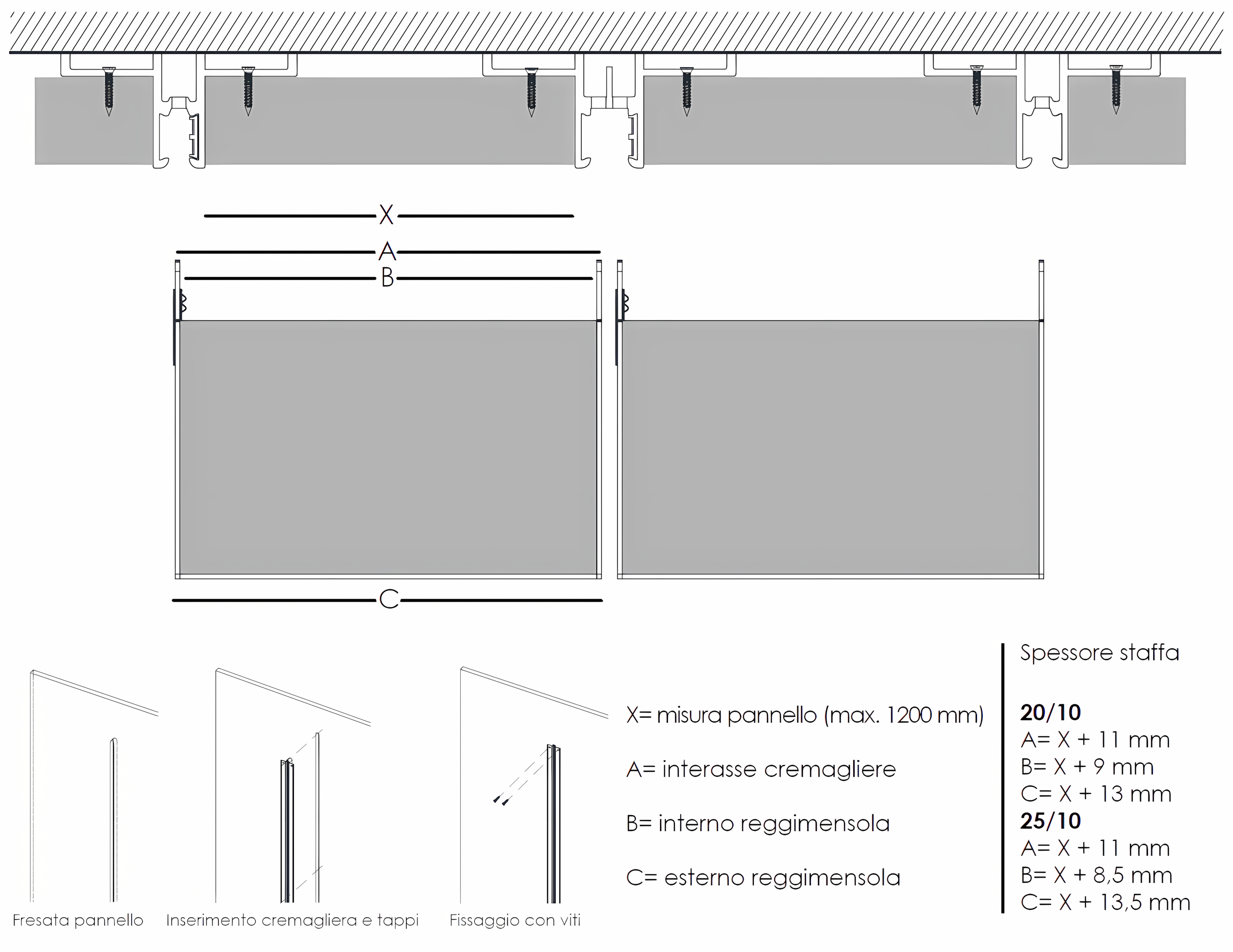 Sistema di cremagliera elettrificata con sistema di connessione elettrico integrato nei supporti reggimensole.